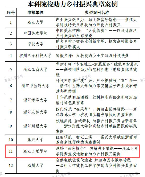 近日,浙江省教育厅办公室公布了第四届高校助力乡村振兴典型案例评选结果,我校申报的《深耕“蓝色粮仓”破解种业难题——浙江万里学院聚焦校地融合助力乡村振兴案例》成功入选本科院校类典型案例。本次评选经高校自主申报、专家严格评审等多轮筛选,全省仅有15项本科院校案例脱颖而出,我校凭借在乡村振兴领域的持续深耕与创新实践位列其中。