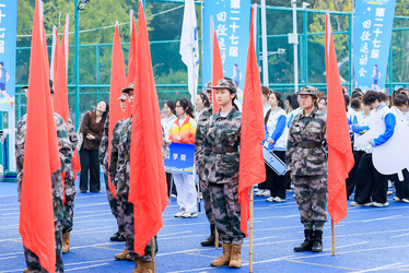 迎着晨曦,国旗护卫队迈着矫健的步伐,气势昂扬地走来。健身操舞俱乐部活力四射的开场表演瞬间点燃了全场的运动热忱。团体操《奇妙的惊喜》带来惊艳表演,《金蛇狂舞》的旋律响彻云霄,《追寻》的歌声沁入人心。各二级学院方阵、教职工代表方阵、裁判员方阵与志愿者方阵依次登场,洋溢着蓬勃朝气,绽放着激情力量。