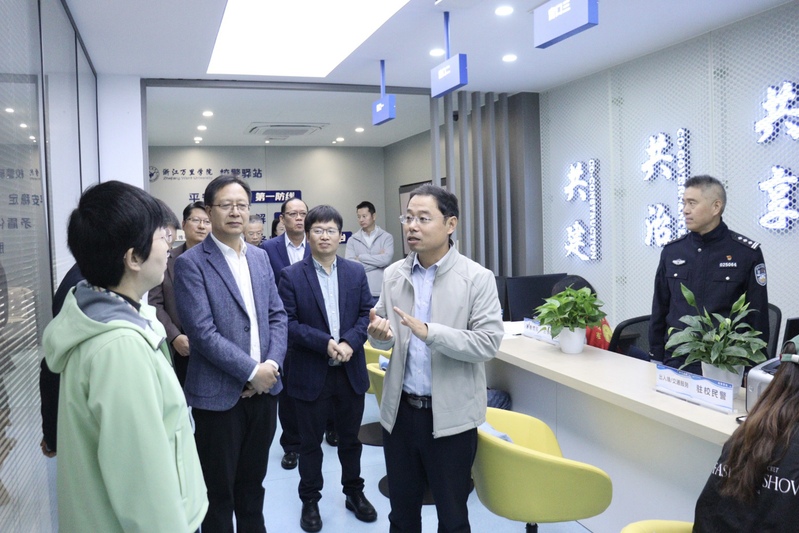 李雪莲一行先后走访参观了“校警驿站”、校园应急指挥中心、宁波市法律援助中心浙江万里学院工作站及锦旗活动室,系统了解了我校在校警协同治理、校园安全防控、法律援助服务实体化运作及学生实践成果展示等方面的机制建设与实施成效。