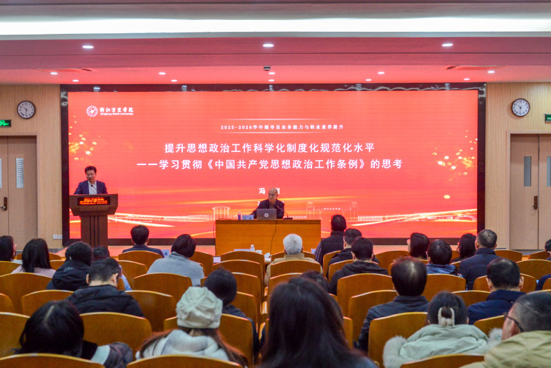12月26日上午,北京科技大学思想政治工作研究院院长、博士生导师冯刚教授应邀来校,作题为《提升思想政治工作科学化制度化规范化水平-学习贯彻〈中国共产党思想政治工作条例〉的思考》专题讲座,全体中层干部、全体辅导员、基层党支部书记、各民主党派、统战团体成员等参与会议。党委书记王伟忠主持学习会。