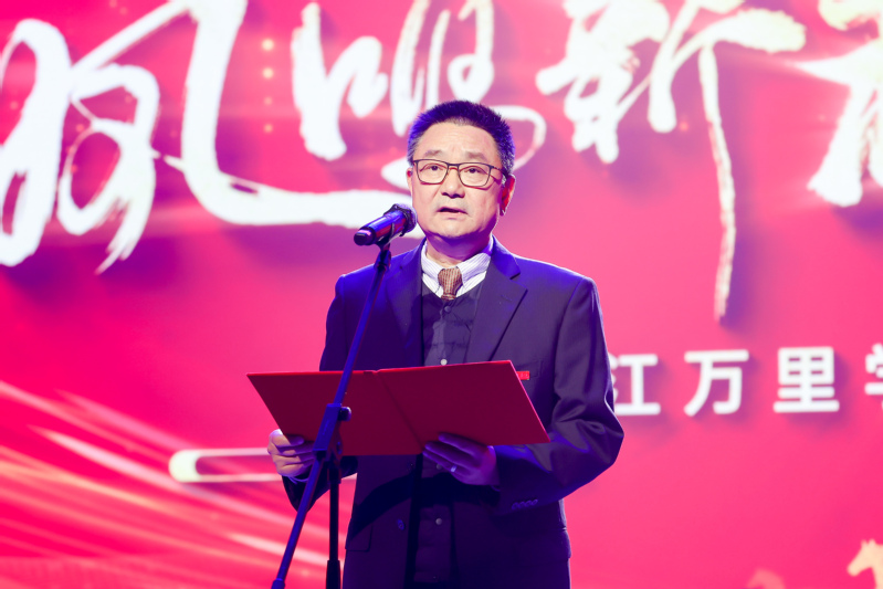 声声倒计时中,晚会拉开序幕。一段精心制作的开场短片,以光影串联过往,将过去一年学校的发展足迹、标志性成果与温暖瞬间一一呈现,生动诠释了全体万里人同心协力、奋发向上的精神气象。学校领导、教职工代表通过荧幕向全体师生送上深情寄语,字句真挚,祝福满满,为新年更添一份温情与力量。校长林志华登台致辞,他分享了过去一年学校发展成绩,希望全体师生同心聚力,决胜“升大申博”关键之年,并向广大师生和校友致以最诚挚的新年祝福。