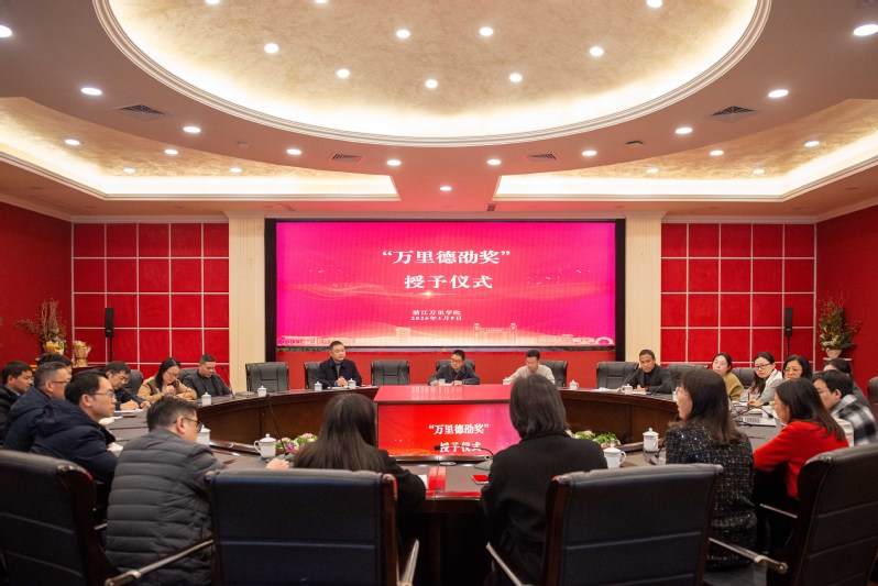 1月9日下午,学校举行“万里德劭奖”授予仪式暨干部座谈会。校长林志华,党委书记王伟忠,纪委书记孙斌出席会议。会议由党委委员、党委组织部部长邵鹏飞主持。
