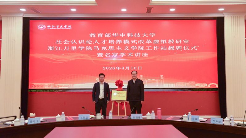 4月10日上午,教育部华中科技大学社会认识论人才培养模式改革虚拟教研室-浙江万里学院马克思主义学院工作站揭牌仪式暨名家学术讲座,在我校行政楼112会议室举行。中国辩证唯物主义研究会社会认识论专业委员会会长、国家“万人计划”教学名师、教育部“长江特岗学者”欧阳康教授,党委书记王伟忠出席,教务处相关负责人、马克思主义学院师生代表共同参会。