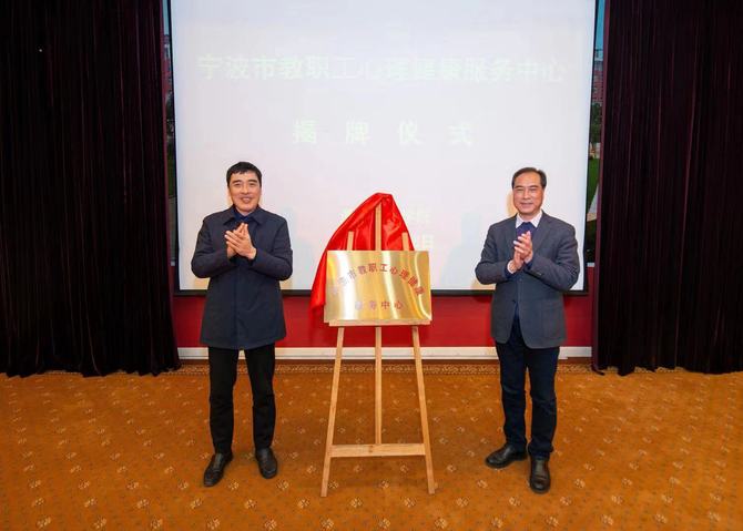 1月15日下午,宁波市教职工心理健康服务中心揭牌仪式在我校举行。宁波市教育局党委委员傅雪波、市教育工会主席马小平、我校党委书记蒋建军等出席仪式。受聘咨询专家、在甬高校工会负责人参加了揭牌仪式。仪式由校工会主席陈建荣主持。