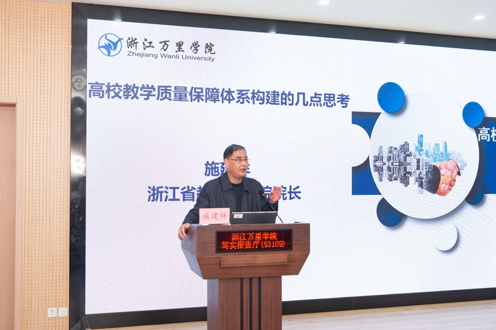 开班第一课,学校邀请了浙江省教育评估院院长、浙江省高教学会秘书长施建祥教授作题为“高校教学质量保障体系构建的几点思考”主题报告。施建祥从当前高等教育面临的主要问题、高校教学改革的主要内容、质量保障体系构建的核心理念、关键要素以及主要内容等六个方面,阐述了教学质量保障体系建设的重点与路径,特别在专业和课程标准建设、质量监控内涵和手段改革以及持续改进等方面要加强建设。