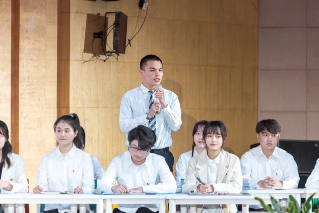 校学生会执行主席沈锦婷作为我校省级思政名师工作室的特色项目朋辈讲习团讲师,带来题为《争做‘最美窗口’的青春代言人》的倡议。沈锦婷以宿管阿姨通过会计资格考试为切入口,分享了普普通通万里人奋斗的“窗口”故事,引申出每个奋斗的城市中人都是最美的“小窗口”,并号召青年学子要为助力争当“重要窗口”模范生贡献青春力量。另外,还有20余名“00后”青年学子以朗诵形式为争当“模范生”发出铮铮青春宣言。