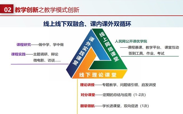 坚持将“情感支持”融入教学之中,采用“云+端”混合式教学,实现线上线下教学的真正融合;并将“专业教学与思政教育相结合”,“MOOC与研究性学习相结合”,“立体化资源与个性化培养相结合”贯穿于教学始终;通过线上线下学习过程和成绩计分标准的科学设置与系统统计,实现教学评价的精细化、客观化和可视化。