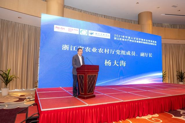 杨大海作了讲话,他指出海洋渔业已经成为浙江农业中非常重要的一张金名片,为浙江农民增收致富、农村经济社会发展和乡村振兴发挥了重要作用。长期以来,浙江省高度重视水产种业的发展,把它作为推动渔业转型升级,实现高质量发展的“芯片”。早在十二五期间就在全国率先启动了水产新品种选育重大专项,相继育成了一批具有竞争力的国家水产新品种。今后,要围绕忠实践行“八八战略”,奋力打造重要窗口,广泛学习和借鉴国内外专家、学者的真知灼见,加强水产种质资源普查和保护利用、种业的自主培育、育种创新能力建设,进一步培优品种、提升品质、打造品牌,形成更多水产种业标志性成果,坚决打好“种业翻身仗”,努力打造水产种业强省,为浙江建成农业农村现代化的先行省贡献智慧和力量。