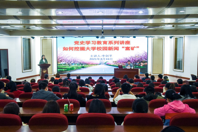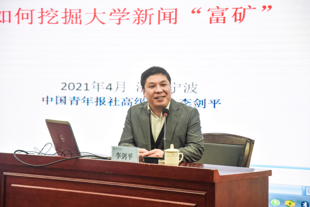 如何在党史学习教育中践行高校新闻宣传工作者的初心使命?4月16日下午,我校邀请《中国青年报》高级记者、第十九届中国新闻奖一等奖获得者李剑平为我校宣传联络员、新媒体运营团队作“如何挖掘大学新闻‘富矿’”主题讲座。