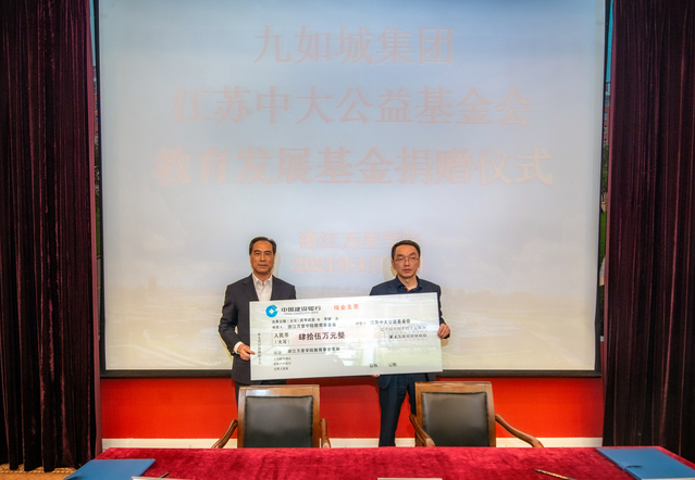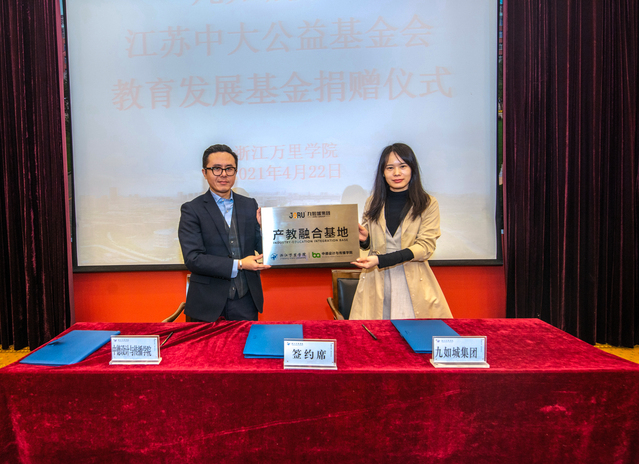 4月22日,九如城集团通过江苏中大公益基金会向我校捐赠教育发展基金仪式、九如城-中德设计与传播学院产教融合基地成立仪式举行。校长应敏,党委书记、教育基金会理事长蒋建军,江苏中大公益基金会理事长路光、九如城集团综合支持中心副总经理庄雪娇等出席仪式。仪式由中德设计与传播学院常务副院长张宜平主持。