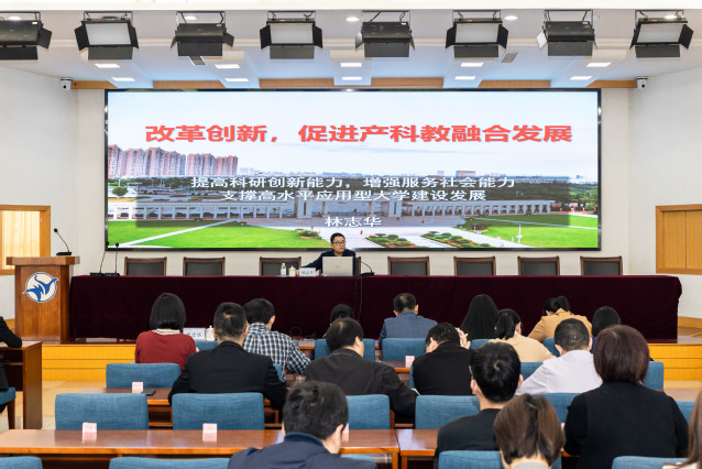 4月27日,中青年干部暨第二期中青年骨干培训班培训讲座在行政楼212会议室举行,校党委委员、副校长林志华以“改革创新,促进产科教融合发展”为题,为全体培训班学员讲课。
