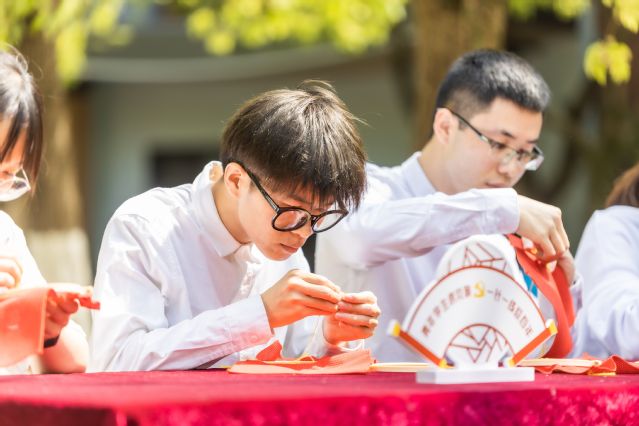 在众多绣手中,身强体壮的胡龙龙显得尤其特别,他坦言,刚开始,连针都不知道怎么拿,在跟同学交流、欣赏其他刺绣作品后,经过不断尝试,刺绣水平有了提高和突破。“活动满满的仪式感,更加坚定跟党走的信念。”他表示,在纵横交错的丝线中,延续了党的温暖甚至国家的记忆,同时,进一步增强了师生党员的爱国情感。