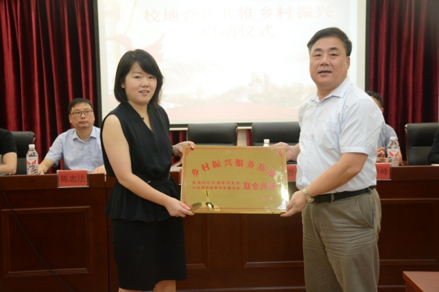 为深入贯彻落实党的十九大精神,更好发挥民主党派服务地方社会经济发展的职能,6月25日,“校地合作共推乡村振兴”启动仪式在青田县季宅乡学校举行。民进浙江万里学院支部主委晋学军同中共季宅乡党委书记林一玲签订了《共建乡村振兴服务基地协议书》,并进行“乡村振兴服务基地”授牌仪式。