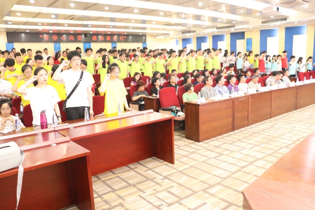 7月4日下午,我校2019年“青春心向党,建功新时代”大学生暑期社会实践活动出征仪式在图书馆报告厅举行,校党委副书记王伟忠,校党委委员、秘书长、宣传部长王福银,教务部、学生工作部(团委)、国际交流合作部、研究生部、计划财务部、校园建设管理部(保卫部)、马克思主义学院等相关负责人、各二级学院党委领导同200余名参加暑期社会实践的师生代表共同参加了出征仪式。