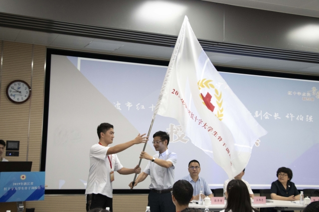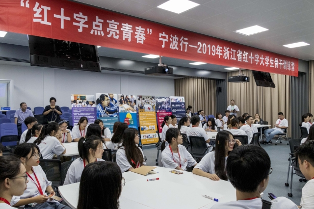 7月16日,2019年浙江省红十字大学生骨干训练营在我校火热开营。来自全省30所省红十字高工委成员单位的56名优秀红十字大学生骨干将参加为期5天的训练营活动。浙江省红十字会党组书记、专职副会长陶竞在开营仪式上讲话并宣传训练营正式开营。我校党委副书记、红十字会会长王伟忠,红十字国际委员会东亚地区代表处教育与培训项目主管叶英华分别致辞。宁波市红十字会党组书记、常务副会长许伯强为训练营授营旗。