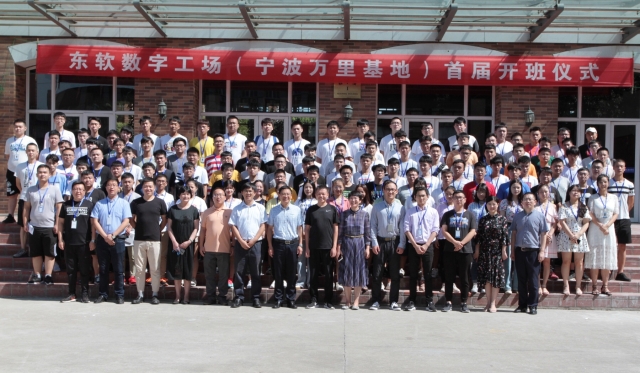 8月26日,落户在我校的东软数字工场首届开班仪式在回龙校区学术报告厅举行。浙江万里学院副校长马建荣,东软教育科技集团高校市场部部长孙扩,湖南科技职业学院软件学院书记栗文仲,东软教育科技集团数字工场负责人富宇,我校教务部、保卫部、大数据与软件学院及东软教育科技集团、湖南科技职业学院相关人员,与首届特色班106名同学欢聚一堂,开启数字工场软件人才培养模式,该模式以产学研协同融合机制建设为特征、大学与企业、师生与工程师互利共赢为特点。