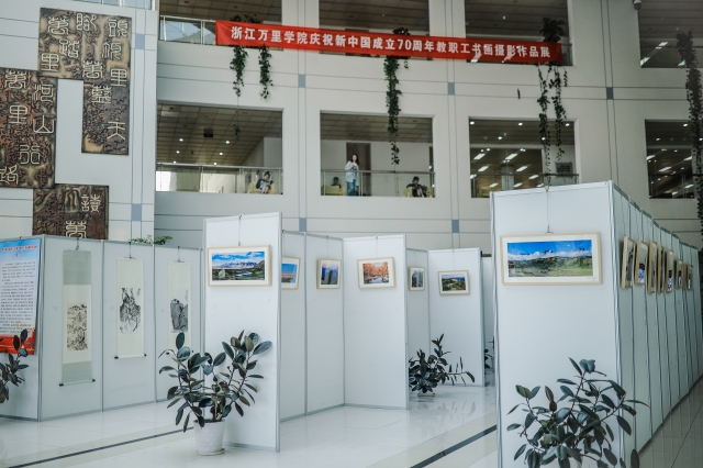 9月26日下午,由校工会主办的“庆祝新中国成立70周年教职工书画摄影作品展暨‘活力万里’”开幕式在图书馆举行。校党委副书记王伟忠、校工会主席陈建荣、校工会副主席杨忠辉以及各学院师生代表出席开幕仪式并参观了摄影书画展。杨忠辉主持开幕式。