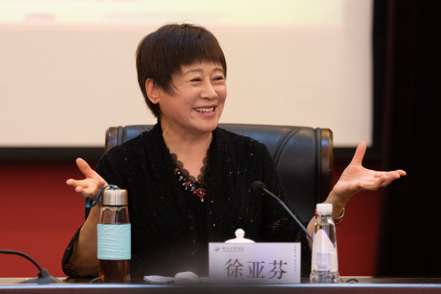 窗外的阳光投射下空中花园的影子,徐亚芬老师铿锵有力地说道:“浙江万里学院一定会被载入中国高校的史册!”