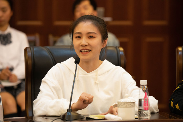 来自新闻系的大三学生管诚诚则提问徐亚芬老师“如何成为一名出色的管理者”,徐亚芬老师现场传授“管理经”,告诉现场的学生干部要多和团队沟通,形成团队文化才能更好的带领团队披荆斩棘,成为一个所向披靡的优秀队伍。