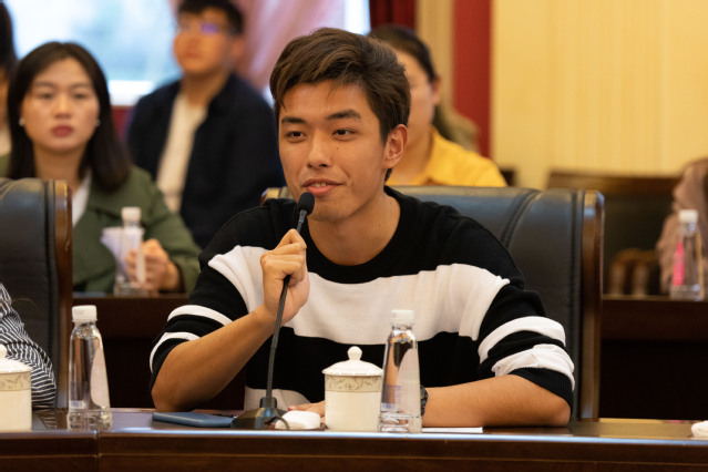 中德会展182班的张桉源在学校国际志愿者中心负责与留学生交流,他就“文化的传承与交流”向徐亚芬老师提出了“如何与留学生交流中国文化”“如何传承中国文化”的问题。徐亚芬老师引用了周恩来总理巧妙解释《梁祝》就是“中国版的罗密欧与朱丽叶”的典故告诉同学们,文化的传播来自于认同,文化的传承则是来自于文化自信。培养文化自信,将年轻文化与优秀传统文化融合,让华夏文明更加源远流长。