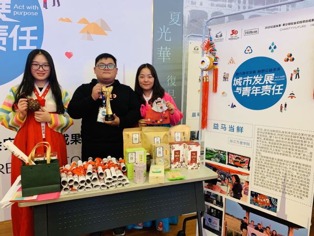 11月14日,由中国扶贫基金会和希尔顿集团主办的公益未来·希尔顿社会实践项目全国总决赛在华东师范大学举行。今年项目主题为城市发展与青年责任,动员全国逾百支学生团高校队针对包容性增长、本地产业帮扶、女性就业等问题设计社会创新方案并付诸实践。在总决赛现场,学生团队通过视频展示、舞台演说、展位路演等方式呈现实践成果,最终我校“益马当鲜”创业团队斩获全国总冠军。