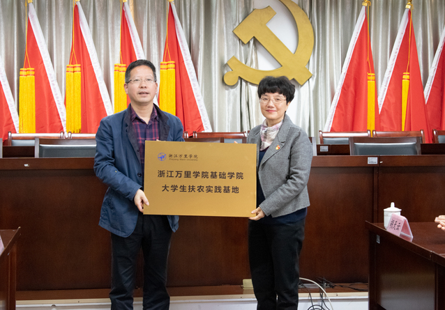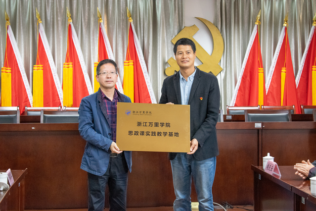 仪式中,张萱和万松钱分别向章水镇授牌,正式成立浙江万里学院基础学院大学生扶农实践基地和浙江万里学院思政课实践教学基地。校地双方都希望以结对共建为契机,充分激发党员活力,积极发挥基层党组织的战斗堡垒作用,开拓创新,合作共赢。