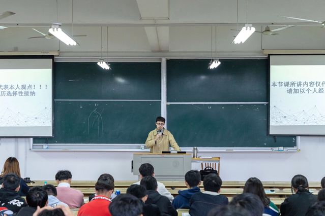 “朋辈领航”是该校思政课程教学改革项目之一,由一群来自不同专业、具有不同经历、有思想的学长在导师的指导下,走上讲台用自己的语言、从自己的视角为大一的学生讲述年轻人的经历与感悟、理想与追求。目前已有24位学长走进课堂,为思政理论教学提供了有效的补充。