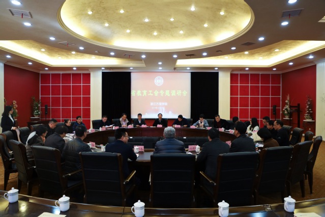 12月10日下午,由浙江农林大学党委副书记冯尚申任组长的省教育工会调研组到我校开展《加强和改进高等学校工会工作的实施意见》《浙江省高等学校教职工代表大会工作规定》贯彻执行情况专项调研。校长应敏、党委副书记王伟忠、工会主席陈建荣出席会议,第六届工会委员会委员参加会议。