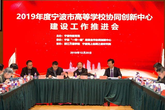 12月20日下午,宁波市高等学校协同创新中心工作推进会成功举行。宁波市教育局党委委员、副局长胡赤弟,市教育局高教处二级调研员王勇,市教育局高教处副处长钟颖以及浙江万里学院副校长兼宁波海上丝绸之路研究院院长闫国庆、浙江万里学校副校长林志华、浙江万里学院校地合作部副部长杨华等出席会议,会议由王勇调研员主持。本次会议由宁波市教育局主办,宁波“一带一路”经贸合作协同创新中心承办,浙江万里学院、宁波海上丝绸之路研究院协办。参加本次会议的还有在甬高校分管领导和科研部门负责人、省市级高校协同创新中心负责人等70余人。