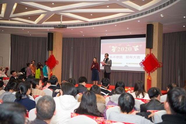机关分工会2020新年联欢晚会现场喜庆祥和,教职员工沉浸在“福”的海洋,在欢声笑语中分享机关教职工在2019取得的成绩,为2019年退休的教师送上感谢和祝福,为新加盟机关的员工表达欢迎和期望,共同祝福万里明天更美好。