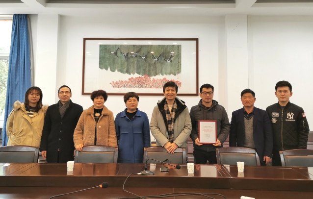1月3日上午,宁海县大佳何镇镇长葛斐嫣一行到访设计艺术与建筑学院,向在“艺术振兴乡村校地协同2019暑期融合设计(宁海)行动”中荣获优秀落地成果奖的冯道刚老师团队颁发了证书及奖金,并对团队成员表示感谢。设计学院院长周斌与镇长葛斐嫣一行就如何深化校地合作进行探讨与交流并制定规划与方案。