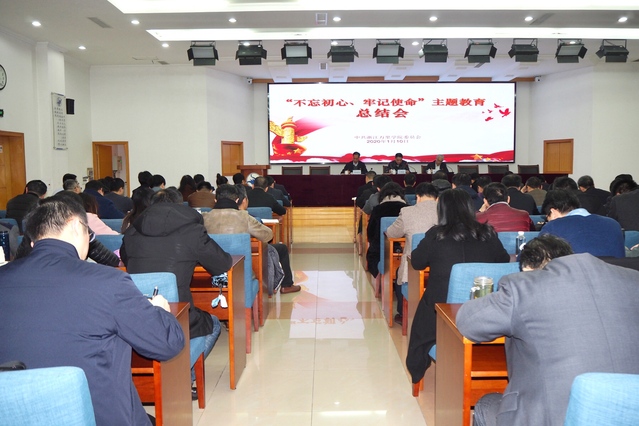 蒋建军最后表示,学校的主题教育任务虽已告一段落,但践行初心使命,我们永远在路上。要全面贯彻落实党中央关于“不忘初心、牢记使命”制度建设部署,要把“不忘初心、牢记使命”作为党的建设的永恒课题和全体党员干部的终身课题。要尽快把“不忘初心、牢记使命”主题教育制度建立起来、完善起来。要牢牢把握学习贯彻习近平新时代中国特色社会主义思想这条主线,继续把学习教育、调查研究、检视问题、整改落实贯穿于推动学校高质量发展的实践中,时刻在思想、政治、作风、能力、廉政方面跟上党中央要求、跟上时代前进步伐、跟上高等教育事业发展需要,不忘初心育新人、坚定信念谋发展,奋力开创特色鲜明的高水平应用型大学和最具幸福感校园建设新局面。