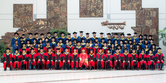 毕业典礼结束后,参加典礼的领导、导师与毕业研究生合影留念。