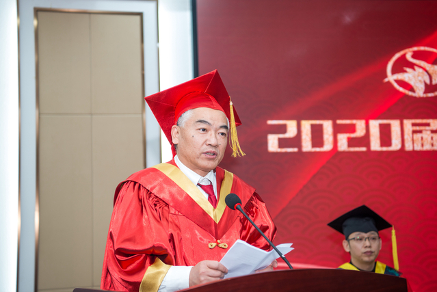 应敏首先代表学校对顺利完成学业的2020届研究生表示热烈祝贺,向为其成长成才倾注心血与汗水的校内外导师及全体教职工致以衷心的感谢,并对即将踏上新征程同学们提出了殷切期望:坚守道德情怀,做自律之人;坚守青春梦想,做自信之人;坚守恒志笃行,做自强之人。最后他希望同学们自觉秉承“自强不息、恒志笃行”的万里校训,追求卓越,崇尚一流,为建设美丽中国、实现中国梦贡献自己的青春和智慧!