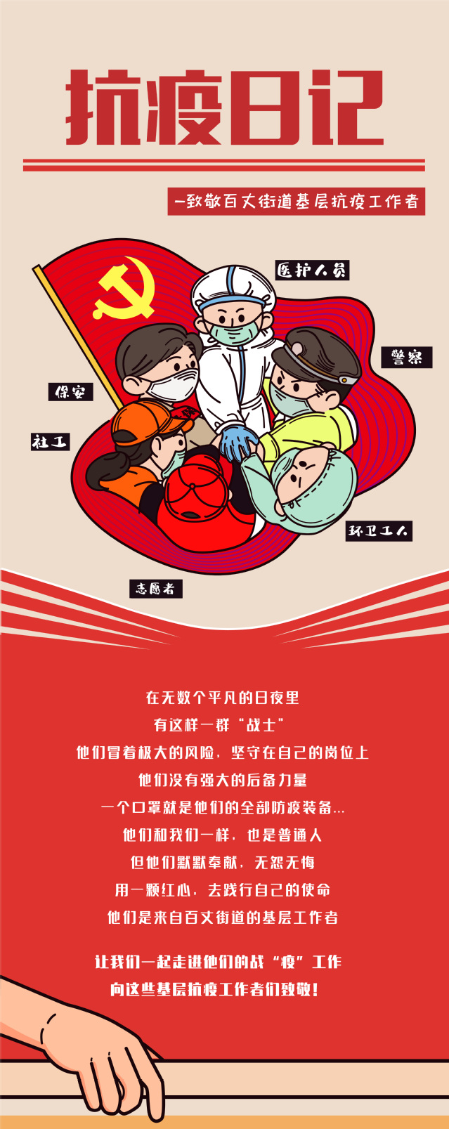 起初林智诺打算就赞美基层干部、提醒居民居家安全等方面做海报设计,在查找了许多报道后,她觉得每一个事例都非常感人。最终她还是决定以长图的形式来记录社区工作人员工作点滴,一方面可以更全面更具体介绍奋战在一线的基层干部的感人事迹,另一方面手绘长图也更具可读性和趣味性。