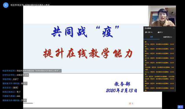 通过在线直播培训,可以帮助教师更快地熟悉、了解线上教学方式及要求,对提升线上教学技能具有针对性和导向性。本次线上培训受到了教师们的普遍好评和肯定,也是教师发展与师资培训方式的探索与尝试。