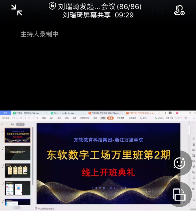 2月24日上午,东软数字工场万里班第二期开班仪式在线上举行。东软教育科技集团数字工场业务部部长袁金凤、研发部部长刘存洋,浙江万里学院校长助理、东软数字产业学院院长梁丰,教务部部长杨亚萍,大数据与软件工程学院院长王仁芳和副院长岑仲迪,以及部分老师和东软数字工场万里班第2期72名学员共86人参加了开班仪式。