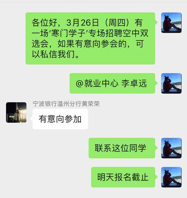 “没想到这么快就能找到工作,让我悬着的心终于落地了!”参加完学校近期举办的空中宣讲会和云面试后,我校毕业生工商管理专业的徐喆同学成功签约宁波银行温州分行,“HR已经通知我尽快办理入职手续。”和徐哲一样,成功签约该单位的还有四位同学。