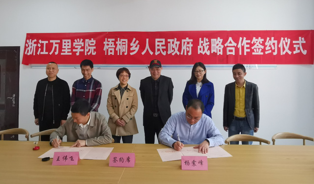 会上,校地双方就产业转型升级、人才培养培训、乡村文化旅游、科技成果转化以及科技决策咨询服务等五个方面达成共识,杨震峰和王伟飞代表双方签订了校地战略合作协议,并在景宁县设立“浙江万里学院乡村振兴专家工作站”,充分利用学院人才科技优势,助力梧桐乡特色产业生态化、绿色化和高质量发展。