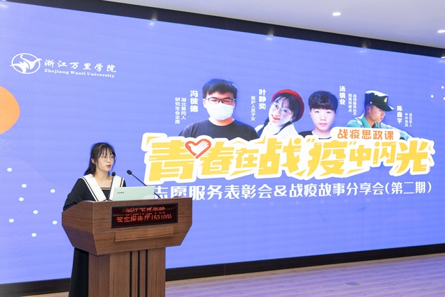 5月26日下午,一场特殊的战疫思政课“青春在战疫中闪光”志愿服务表彰会暨第二期战疫故事分享会在我校报告厅举行。校党委副书记王伟忠、校学生工作部、团委相关负责共同参与。1000余名同学通过直播的形式同步进行了观看。