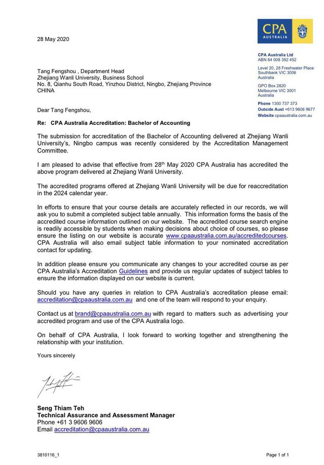 5月28日,我校商学院会计学专业顺利通过澳洲会计师公会课程认证。这意味着今后财会类专业的毕业生在申请澳洲注册会计师执业资格(CPA AUST)时,其中一半的资格考试课程将获得免考资格。同时,也标志着我校会计学专业的国际合作取得新的进展。