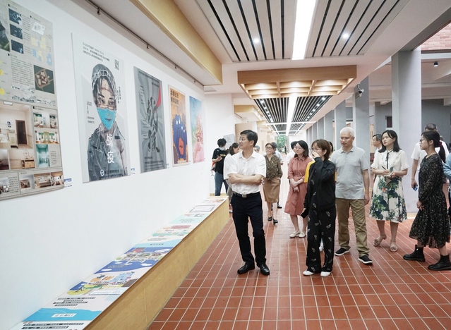 干武东一行首先来到53号楼“众志成城 设计抗疫”主题作品展现场参观考察。看到我校设计艺术与建筑学院师生们用画笔定格动人瞬间,干武东称赞师生视角敏锐,很有创意,并对学校将课程教学与疫情防控、爱国主义教育相结合的方式给予充分肯定。随后,干武东一行还参观了学校党建与思政工作展区,对学校在疫情期间以学习强国、人民网、中国教育报等为载体,充分发挥党建引领作用,有效落实思政铸魂和立德树人根本任务给予充分肯定和高度评价。