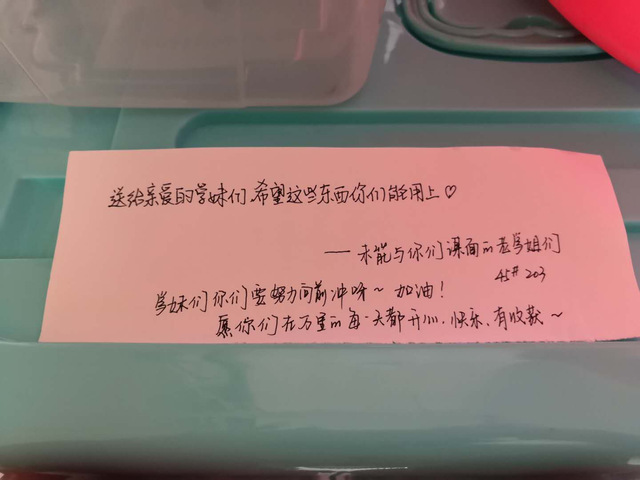 “阿姨,我们寝室四个人都商量好了,把有用的东西留下来,东西全部已经洗干净消毒后放好了,我们想当做礼物送给以后住这个寝室的学妹们,房间我们也打扫过了,希望清卫阿姨不要把这些东西收走。”近日,逸轩楼203寝室的毕业生戴斯琪和李佳荷在离校前找到宿管阿姨曹锡琴和鲍科英,说出了这番话。