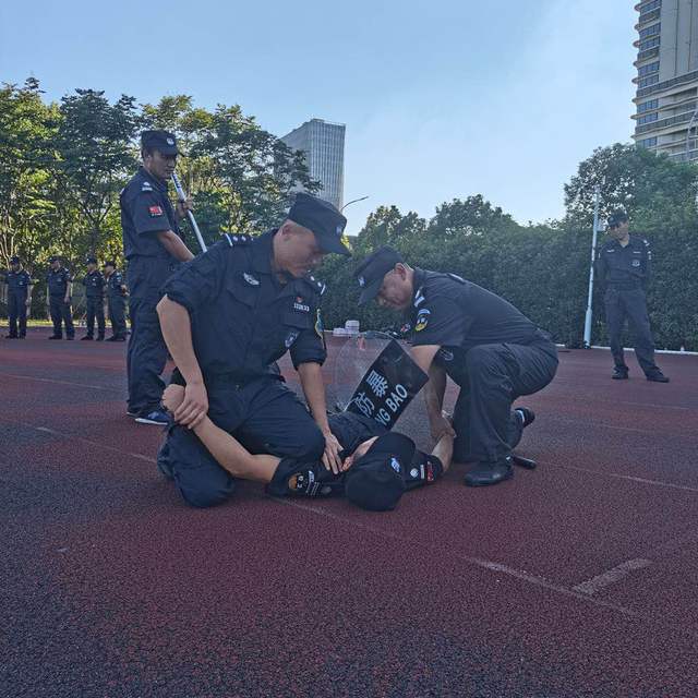 此外,为进一步提升校园内部自我防范能力,提高校园保卫力量处置突发事件技能水平,8月20日下午,我校邀请宁波市公安局特警支队蓝鲨突击队队员为全体校卫队员开展安保技能培训活动。