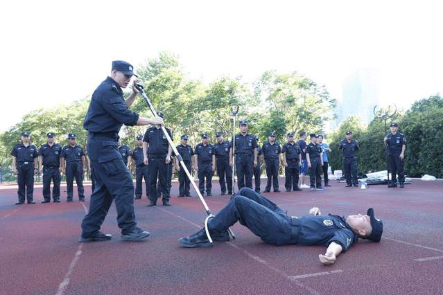 盾牌、钢叉如何正常使用?遭遇暴力分子时该如何走位?擒拿时该用什么样的方式避免受到伤害?特警教官先通过示例,分别演示几组常用制服、擒拿动作,让校卫队员在观看完演示后,再进行模仿练习,重点体会、揣摩动作要领。