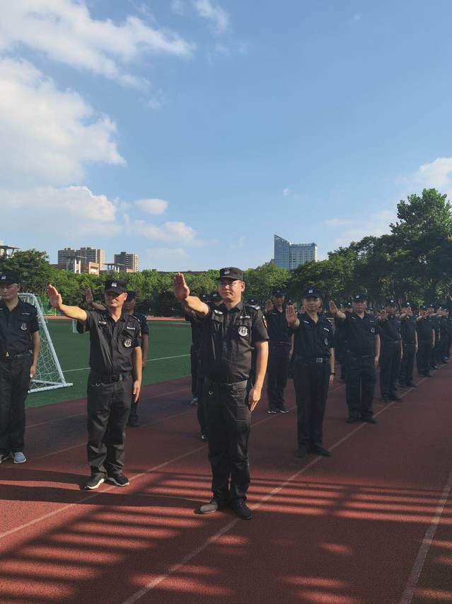 每次训练两小时,全员坚持完成一套套动作、一次次训练。有校卫队员手臂挥错、步子踏歪,他们很自觉地到一边反复练习,没有人叫苦喊累。校卫队员们还接受了值岗执勤服务礼仪、军姿队列等培训。