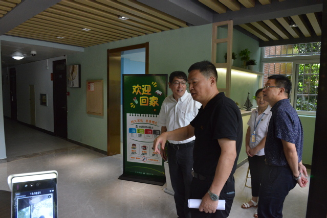 座谈会后,林良富一行到寝室楼进行了实地检查。