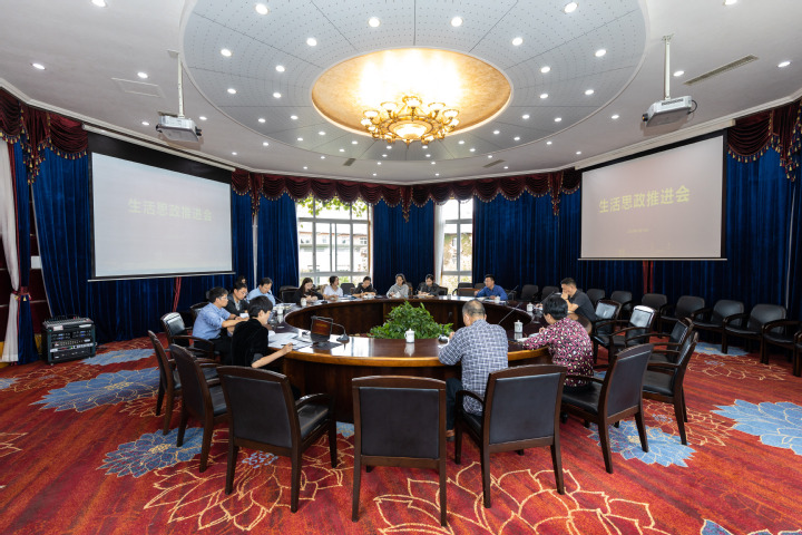 10月14日下午,我校生活思政工作推进会在行政楼202会议室举行。校党委副书记王伟忠、副校长陈建革,宣传部、学工部、校园建设管理部、马克思主义学院和宁波万里后勤有限公司相关负责同志参加会议。会议由王伟忠主持。