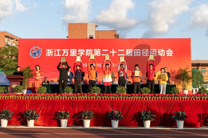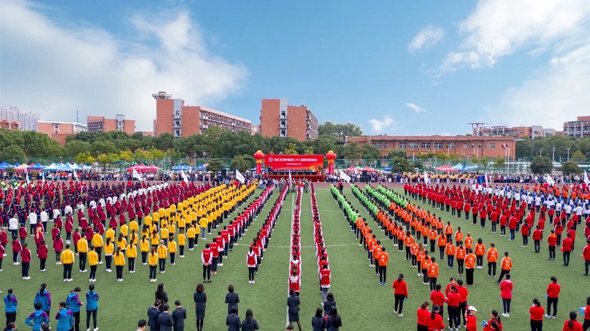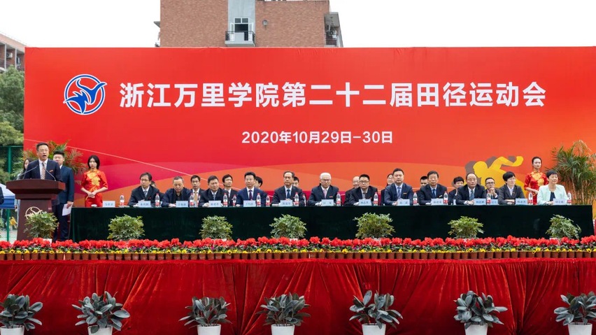 10月27日上午,我校第二十二届田径运动会开幕式在钱湖校区运动场举行。校长应敏,党委书记蒋建军,副校长、体委主任马建荣,副校长林志华,党委副书记王伟忠,纪委书记孙斌,副校长陈建革,工会主席陈建荣,党委委员、秘书长王福银以及各二级学院院长、相关部门负责人等出席了开幕式。