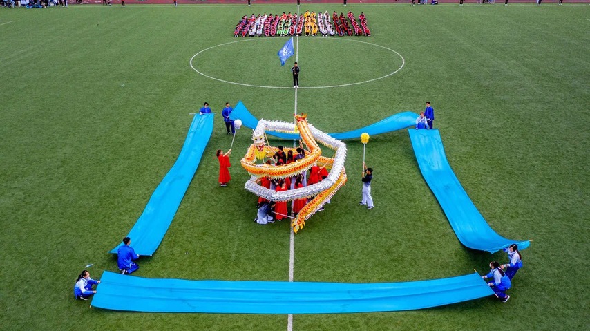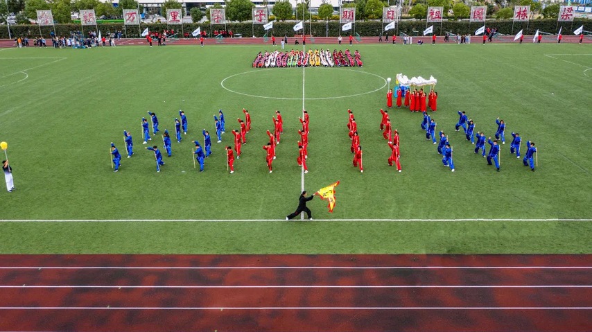 随后,蒋浩鑫同学、李阳老师分别代表全体运动员、裁判员庄严宣誓。应敏宣布田径运动会开幕。